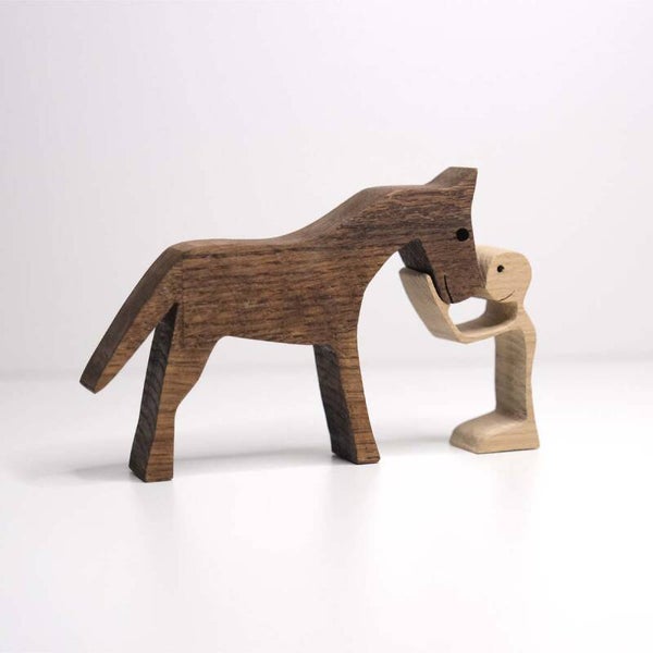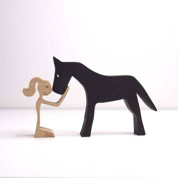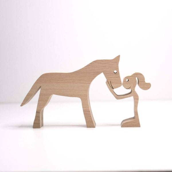 Denne træfigur i egetræ er mere end bare en figur – den repræsenterer det særlige bånd, der findes mellem hest og menneske. Et bånd bygget på tillid, loyalitet og kærlighed. Figuren kan fungere som en daglig påmindelse om det venskab og den glæde, vores firbenede følgesvende giver os.