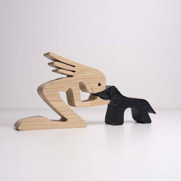Denne træfigur i egetræ er mere end bare en figur – den repræsenterer det særlige bånd, der findes mellem hund og menneske. Et bånd bygget på tillid, loyalitet og kærlighed. Figuren kan fungere som en daglig påmindelse om det venskab og den glæde, vores firbenede følgesvende giver os.