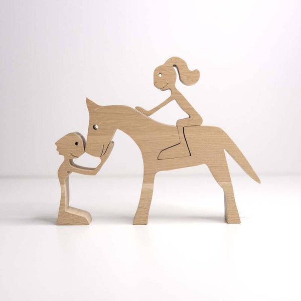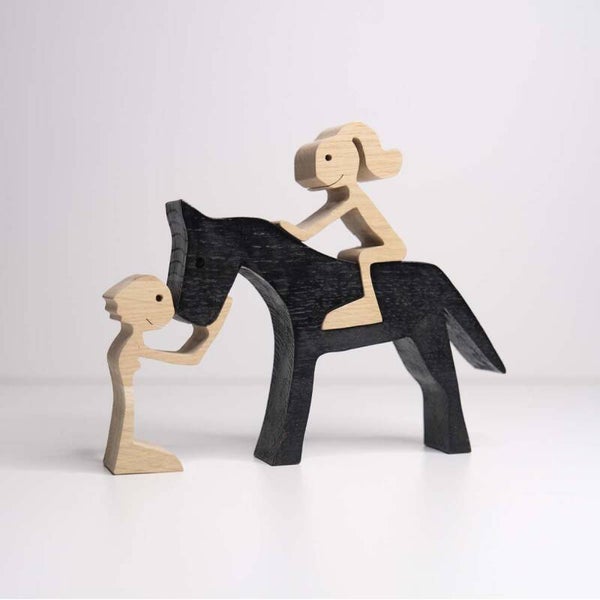 Denne træfigur i egetræ er mere end bare en figur – den repræsenterer det særlige bånd, der findes mellem hest og menneske. Et bånd bygget på tillid, loyalitet og kærlighed. Figuren kan fungere som en daglig påmindelse om det venskab og den glæde, vores firbenede følgesvende giver os.