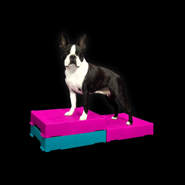 Bemærk: Vi anbefaler brug af FlexBloxMat (gummimåtter) ovenpå FlexBlox for bedre greb og stabilitet (kun nødvendigt på øverste FlexBlox/dem hunden står på).