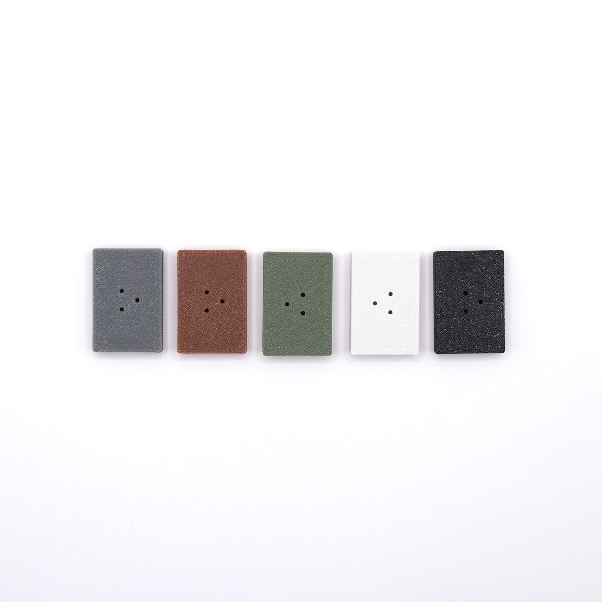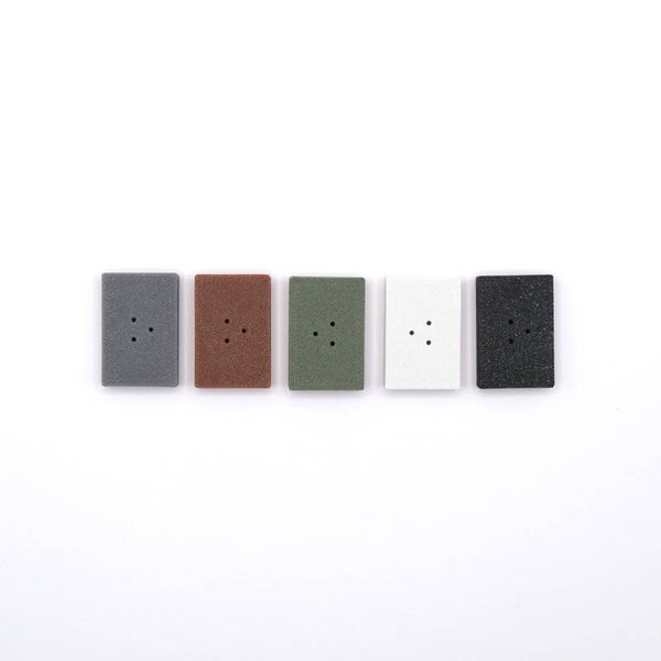 Bland din egen pakke med 5 KildeBrikker i grøn, hvid, grå, brun og sort.
